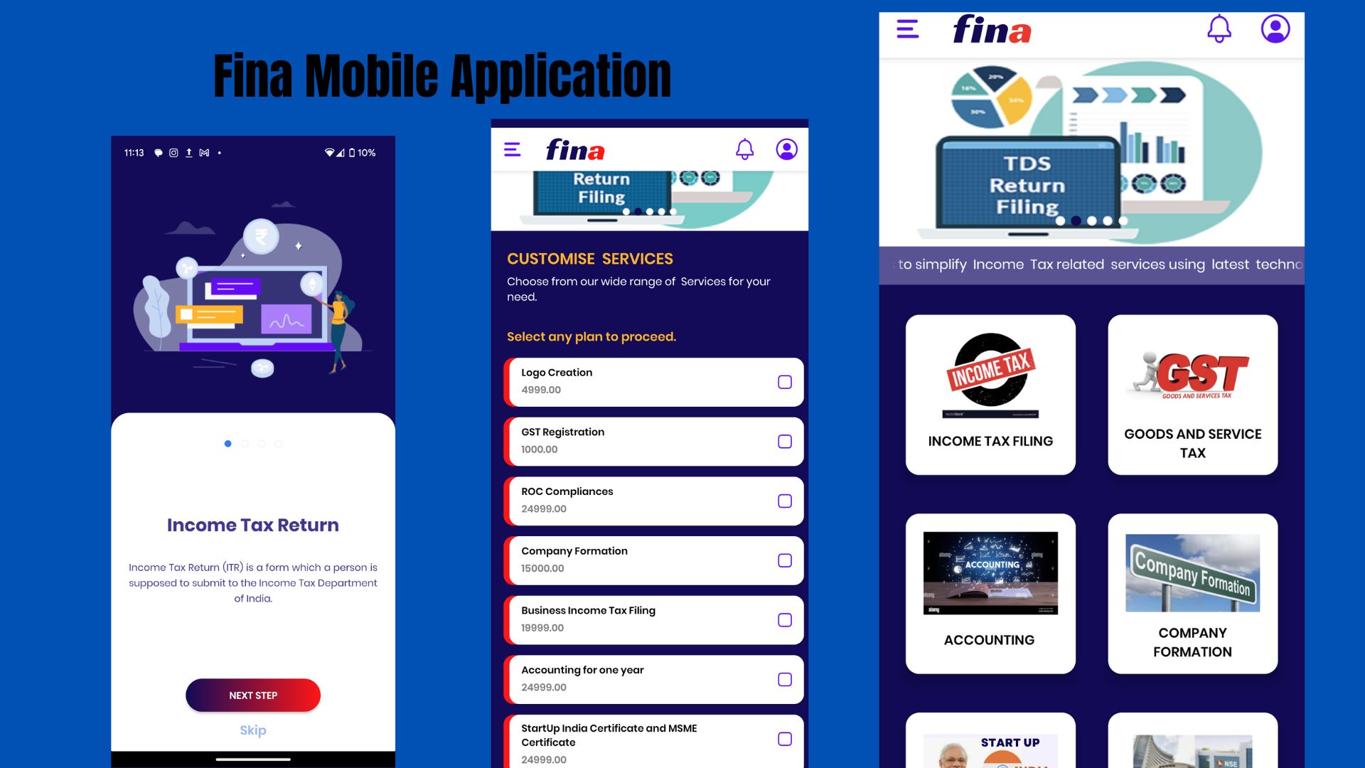 The mobile application of fina has a classic design which eases for users to book their services.